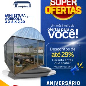 – Cobertura superior em Filme Difusor, que proporciona a luminosidade ideal para o florescimento das suas plantas.