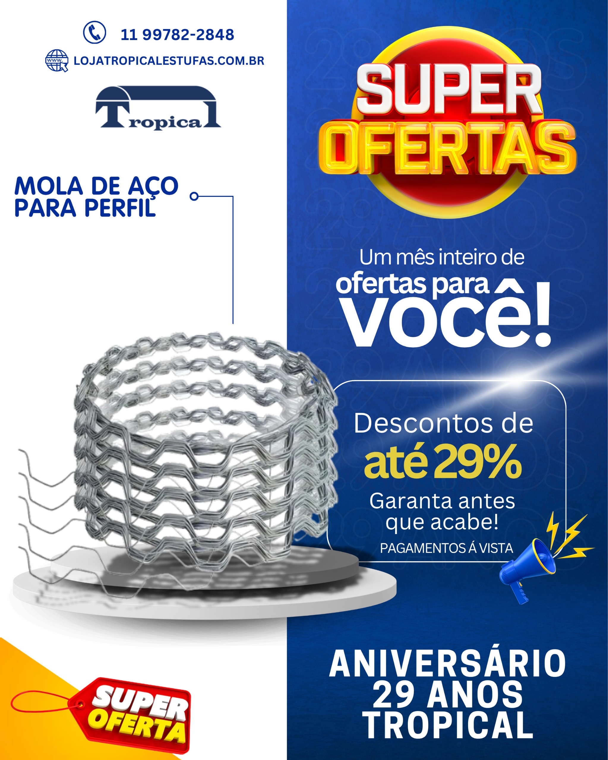 Mola de aço usada juntamente com perfil de alumínio de 1,5cm de largura.